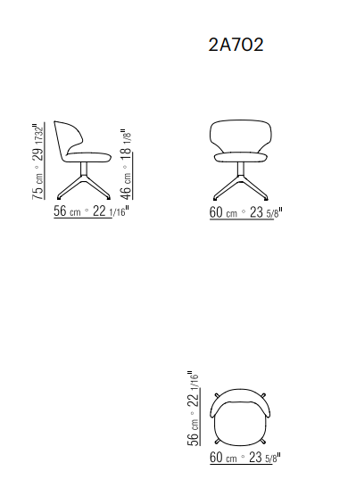 Slender and sleek, the Susanne small armchair sits on a metal stationary or swivel base.