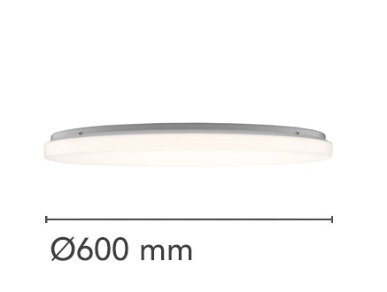 Ceiling/wall lighting fixture, providing diffused light. The front diffuser is made of high efficiency, injection moulded opal Polycarbonate. Ceiling/wall fitting is in injection moulded polycarbonate. Dimmable Led light source powered without the use of any power supply/transformer, but directly by the mains voltage (220-230 V AC). For decorative purposes an optional accessory made of PC and ABS+PC is made available in 4 different finishes: chrome, copper, black fumée and transparent.