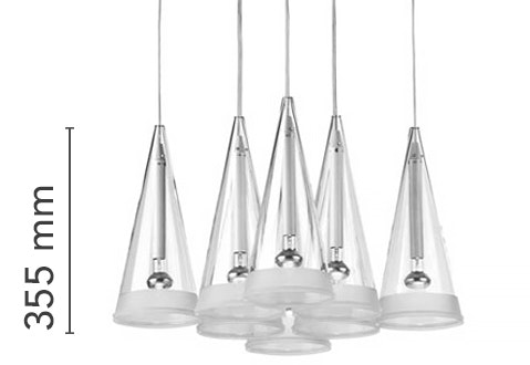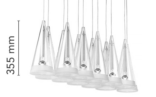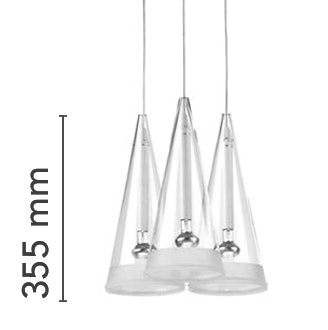 Suspension lamp providing direct light. 1 hand blown glass conical diffuser with sandblasted edge. Injection-molded, opaline silicone diffuser protection ring. Gloss white powder-coated tubular steel body. Rose assembly consisting of ceiling fitting and 30% fiberglass reinforced polyamide cover, both injection-molded.