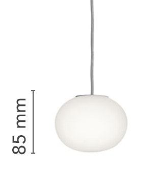 Suspension lamp providing diffused light. Diffuser consisting of an externally acidetched, hand blown, flashed opaline glass. White painted, injection-molded PPS lamp-holder support.