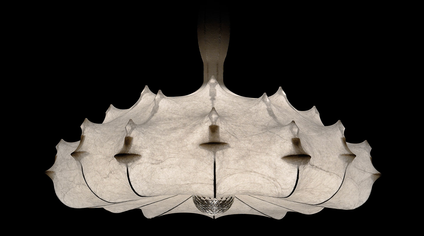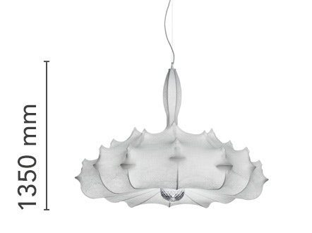 Suspension lamp providing diffused lighting. White powder coated internal steel structure sprayed with a unique "cocoon? resin to create the diffuser which is then protected by a transparent sprayed on finish.Transparent polymethylmethacrylate (PMMA) "candles?. Faceted crystal globe located at the lower center for a sparkle effect.