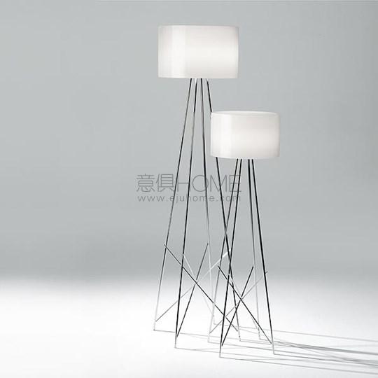 Floor lamp providing diffused lighting. Steel tube (10 mm diam.) structure, welded, brushed and chrome-plated. Diffuser support disk in die-cast, polished and chrome-plated Zamak alloy. Injection-molded PA6 (nylon) lamp-cover. Color: white. Injection-molded PC (polycarbonate) inner diffuser. Color: 3% opal. Injection-molded elastic PVC (polyvinylchloride) feet. Lathe-shaped aluminum diffusers, painted white on the inside, and shiny white or black on the outside or gray-colored, blown and overlaid glass with glossy external finish. On the cable there is the electronic dimmer which allows the regulation of light brightness.