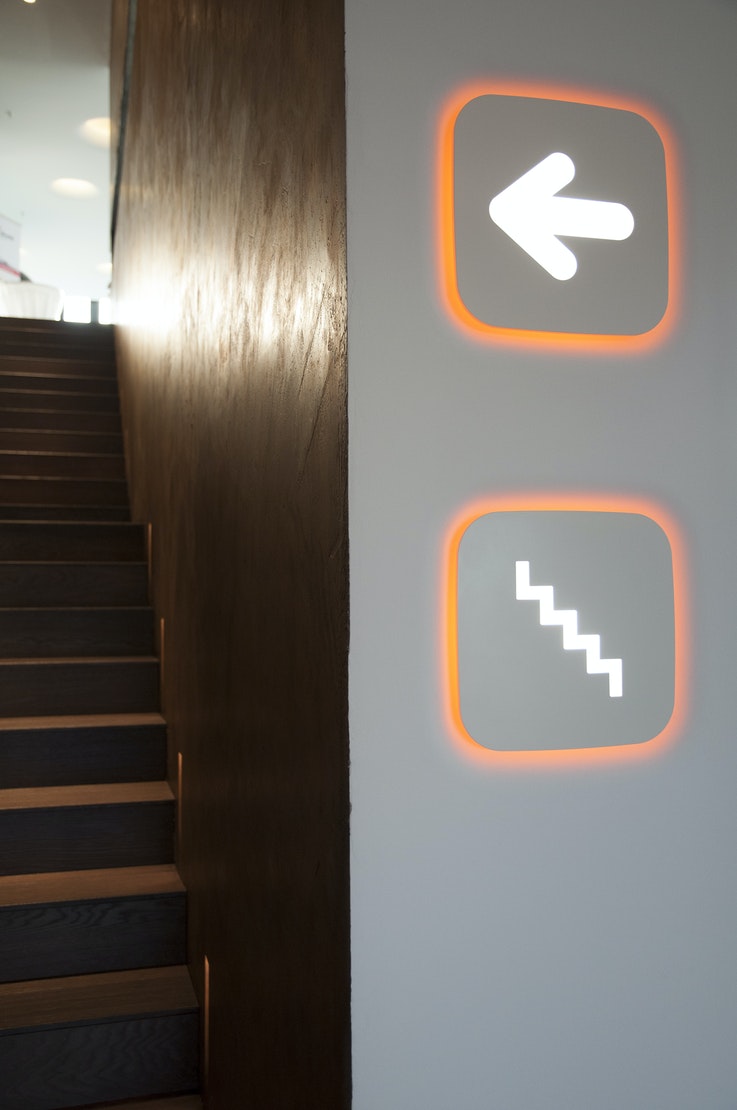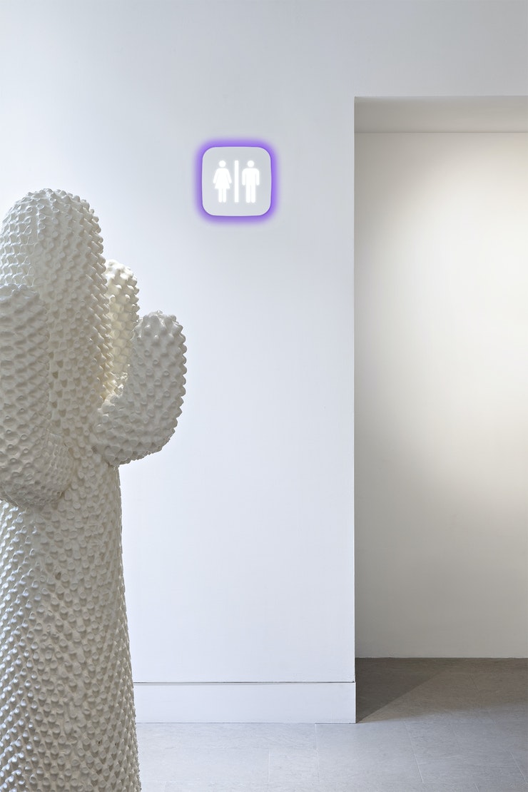 Wall luminaire with minimal visual impact for the signage of spaces with LED light sources. Completely customisable, it is also available in emergency version. Indirect perimeter light, available in three colours: white, orange and violet.