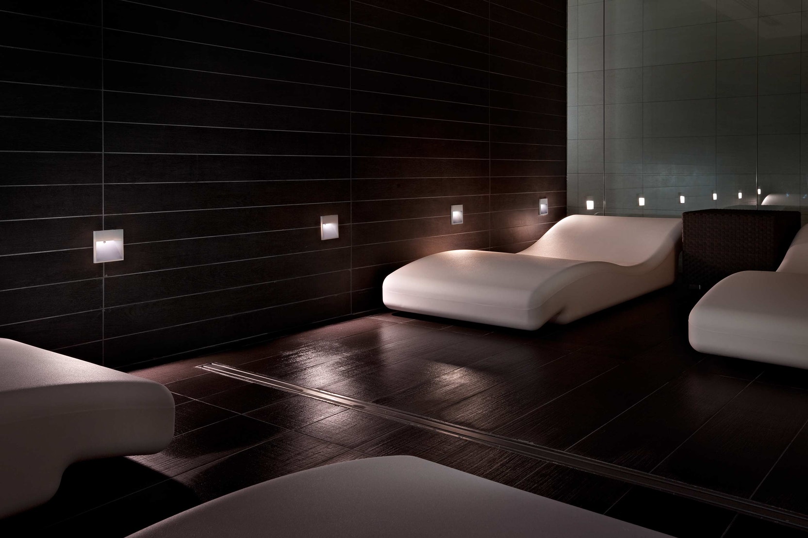 Family of devices for recessed wall mounting with asymmetric light designed to guarantee a high performance in every situation. The new versions have been equipped with latest generation LED lamps. A new recessing device is available for perfect surface-mounting.
