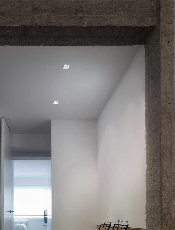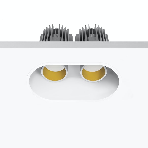 Family of recessed luminaires with LED light source. The delayed position of this light source results in great visual comfort. The Decofix family is available with one or two lights in square and circular versions.