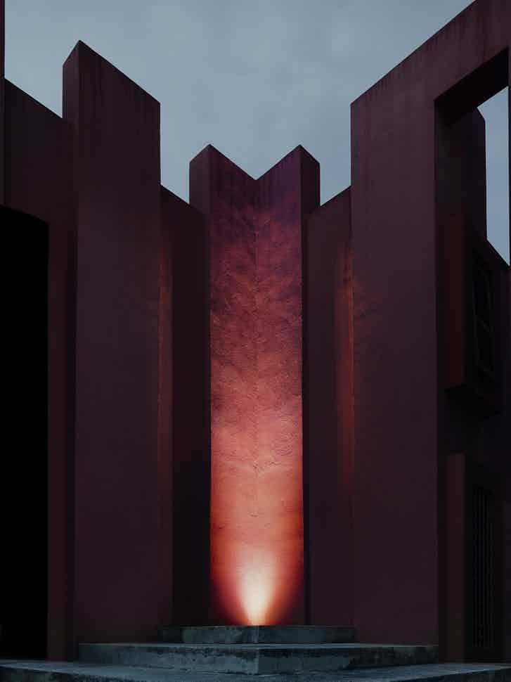 A-Round is a circle inside a square, iself inside a circle. It is informal and picks up on Vitruvio’s idea, but instead of putting man in the centre we have put light.