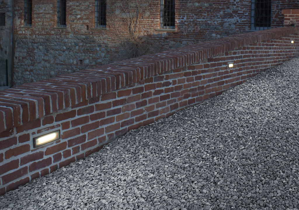 Sandblasted glass diffuser with silkscreen border, fixed through a robotic gluing system. It is possible to obtain an asymmetric or symmetric emission by modifying the position of the LED plate inside the optical compartment.