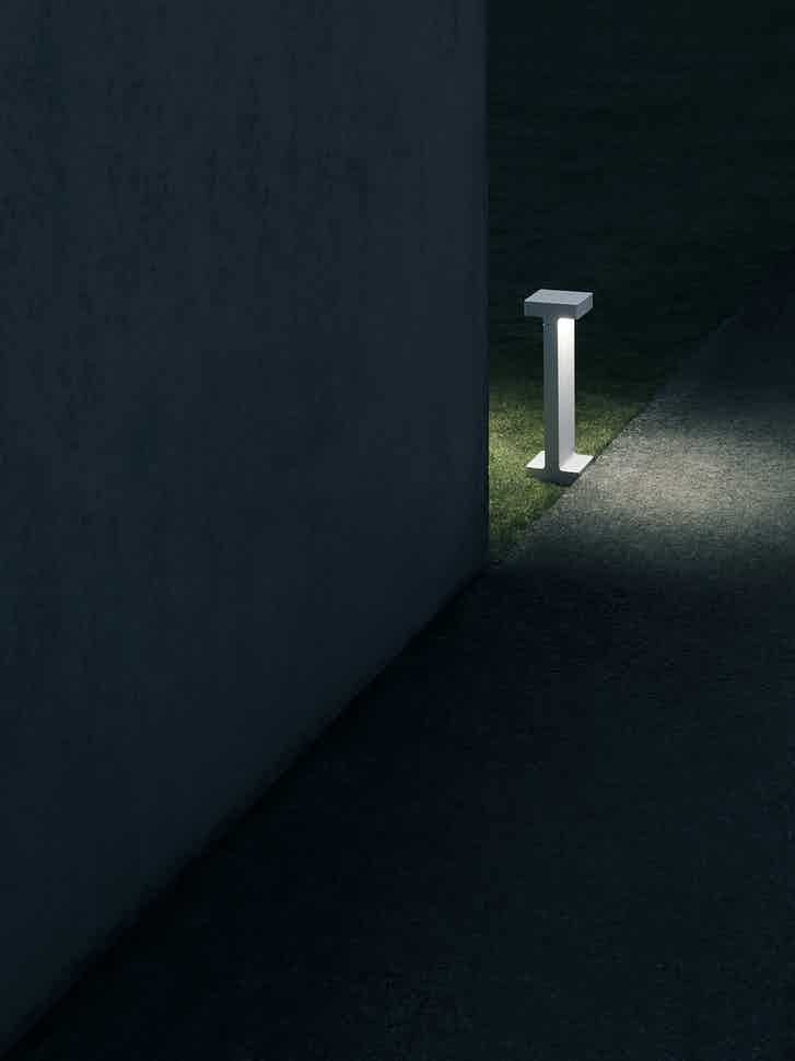 Whenever an architect is requested to be involved in landscaping, the answer is pertinent: he creates architecture. Both worlds are indissolubly connected, where one ends, the other begins. And in some cases they just merge. Casting is a series of miniature lighting icons which fuse landscape and outdoor design. The design of the T and C shapes, casts a clear frame in every background. Its shape clearly reveals the intent of the desired light direction. An expression and attitude of modernist periods “when form follows function”. The half-rounded model, Casting Concrete, refers to a more brutalist architecture. The lamp Le Corbusier developed for the city of Chandigarh was for me love at first sight, it perfectly embodies brutalist architecture “avant la lettre”. I wanted to pay tribute to this archetype by giving it a contemporary interpretation… and with a touch of Flos. An archetype geometry and a solid base, enhanced by a concrete material that reflects its mass.