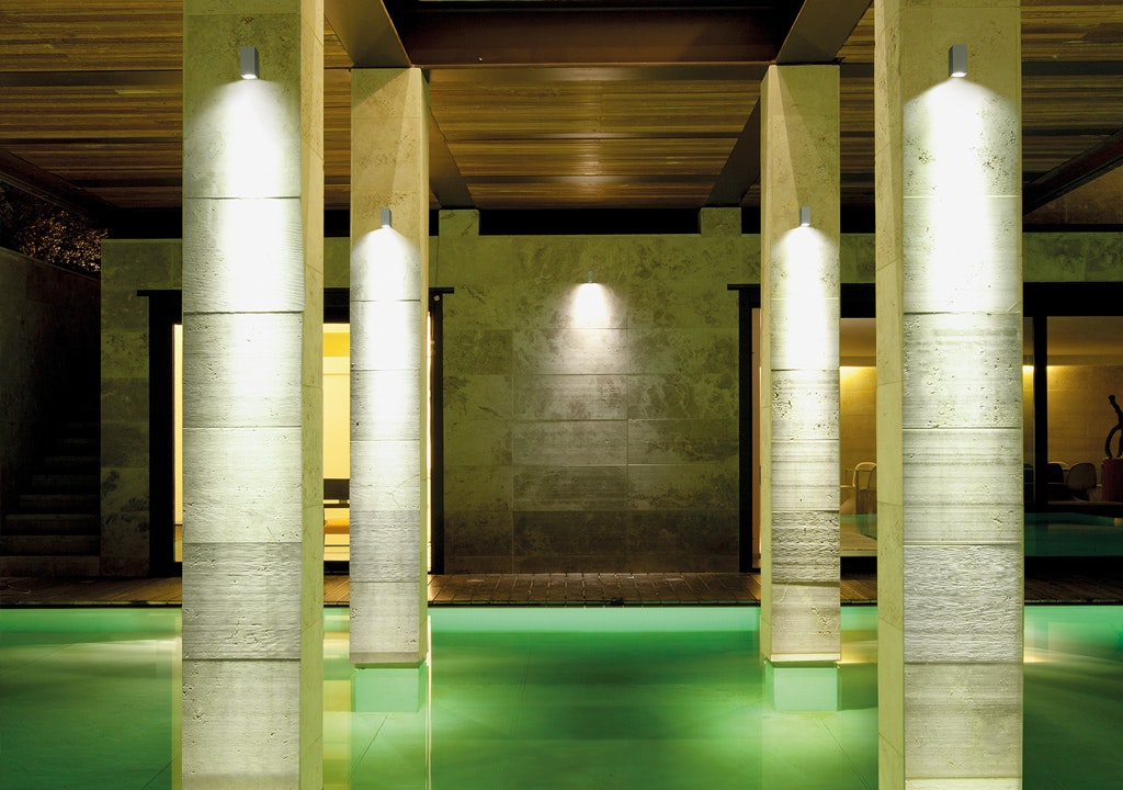 Ultra-compact, rectangular luminaire for wall installation, available for both mono-directional and bi-directional emissions.Extra-clear glass diffuser with silkscreen border.
