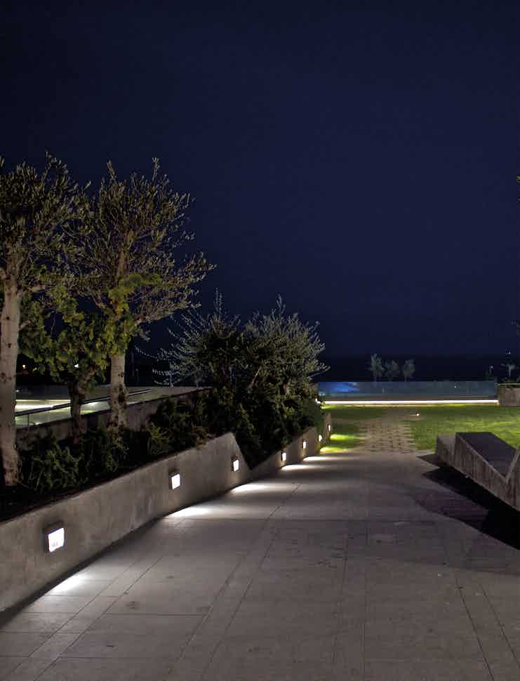 Transparent polycarbonate diffuser. Aluminium reflector for high brightness, available as an optional accessory.