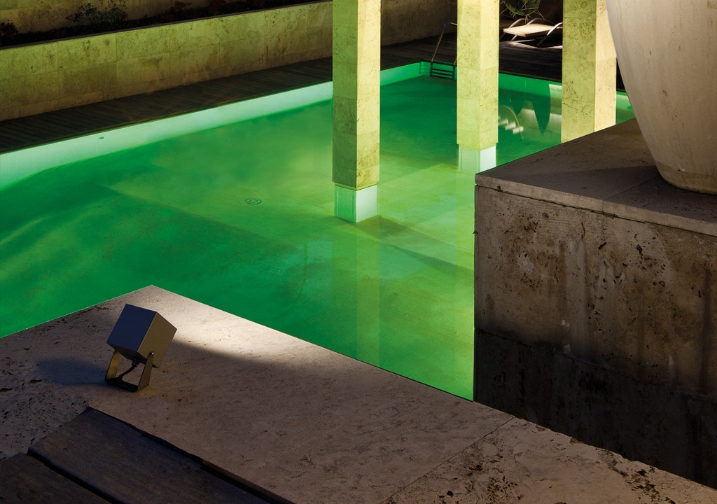 Square and compact adjustable projector for floor, ceiling and wall installation, available in two sizes.Extra clear glass diffuser with silkscreen border, fixed through a robotic gluing system.