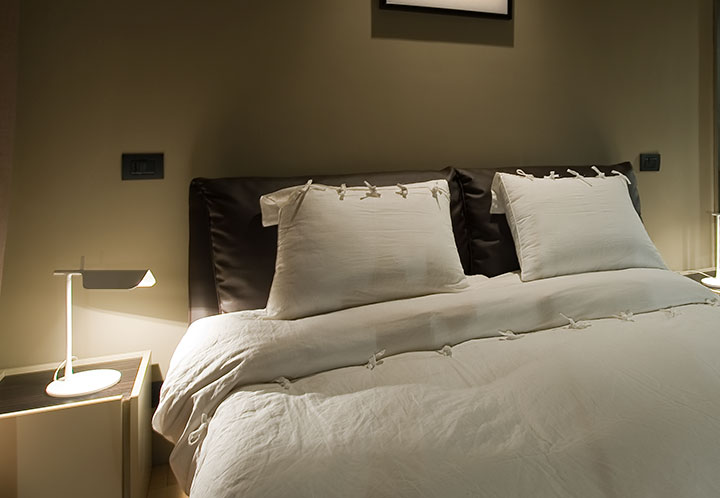 Table lamp. Body in painted pressofused aluminium. Multi-led diffuser in specially designed PMMA to avoid the Multi Shadow effect and dazzle. Head rotation ±45°.