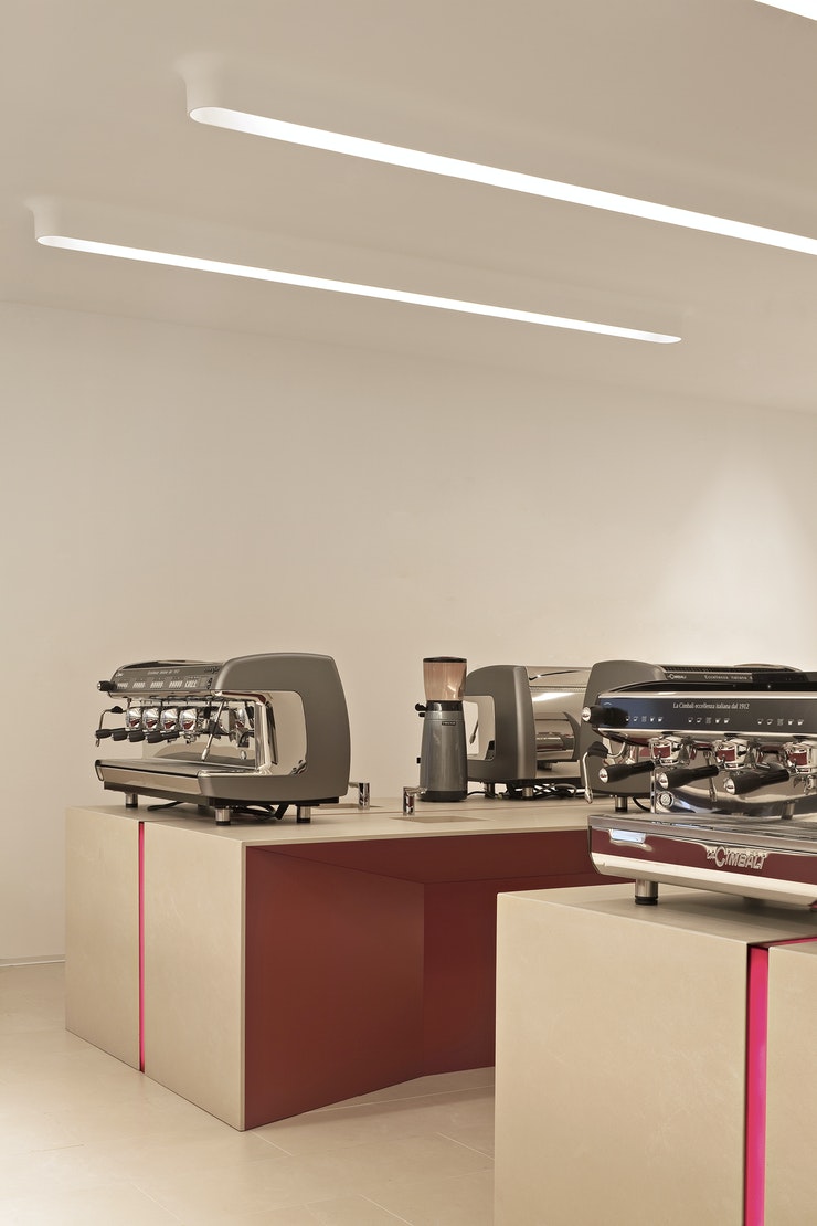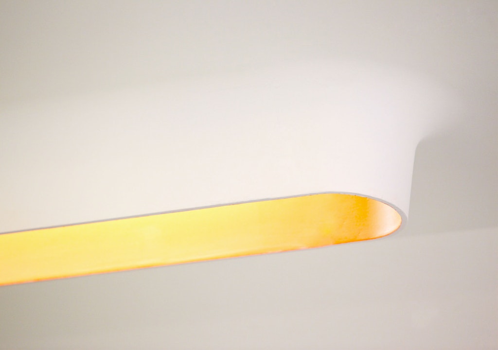 General direct light lighting system. Comprised of Soft Composite modules that permit ceiling mounting and which house fluorescent lighting modules, thus guaranteeing uniform, shadow-free lighting. Inspired by the Flos architectural Kap luminaire, the inside of the Kapprofile can be painted, offering different décors.