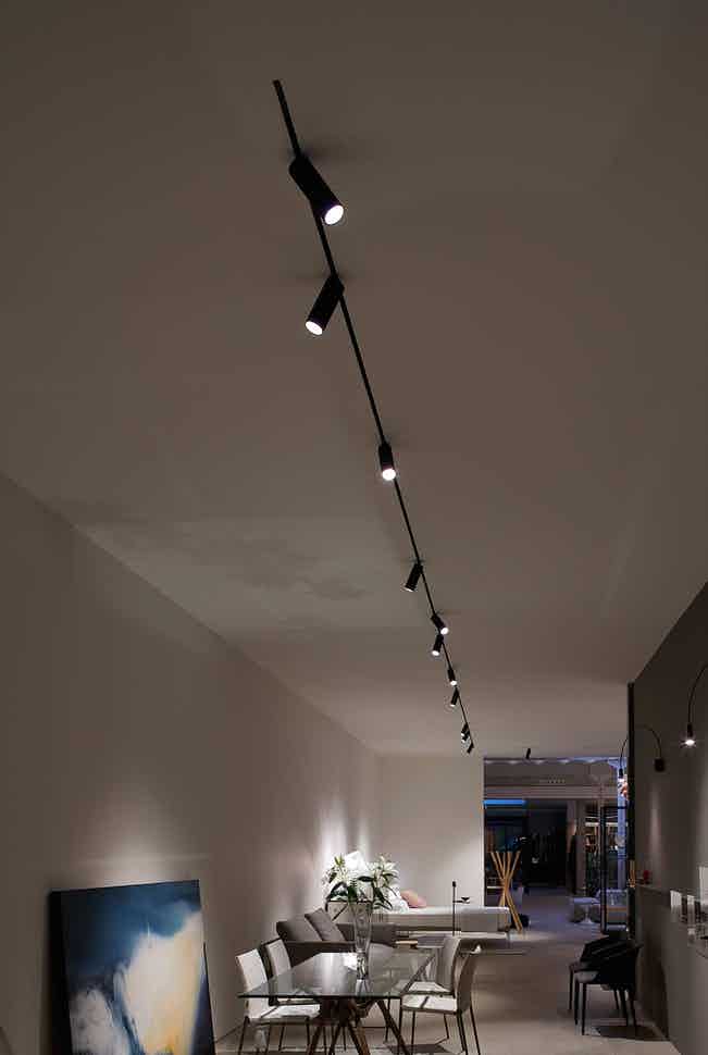 3-phase rail with reduced dimensions in its recessed and surface version. Compatible with a compact and powerful light fixture program. High efficiency reflectors.