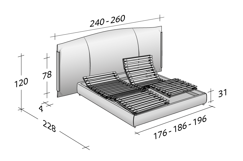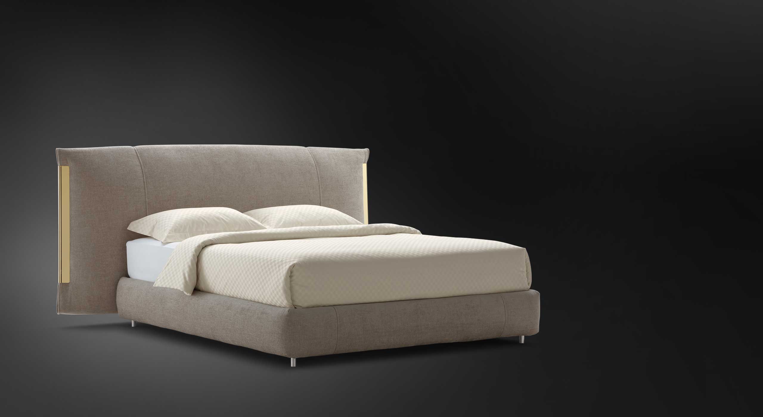 重要的Amal雙人床,由金屬型材的優雅細節所高貴,在床頭板的兩側,“捏”覆蓋物,增強整體的柔軟度,適合優雅的環境。三種型材(閃亮的金色,亞光拋光,光澤的黑色鎳)設計用于促進與各種類型的涂層的組合。可提供 Leonardo 床架, 25厘米高的固定底座,帶有容器底座或帶電動機芯的底座。底座和床頭板,完全可拆卸,可以用布料,皮革或生態皮革裝飾。