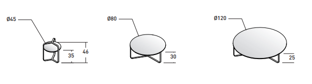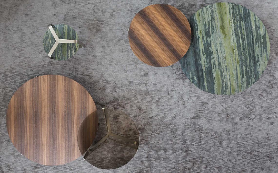 小桌的底座部分為鋼材,面板直徑不同,可放置于各種沙發旁邊。