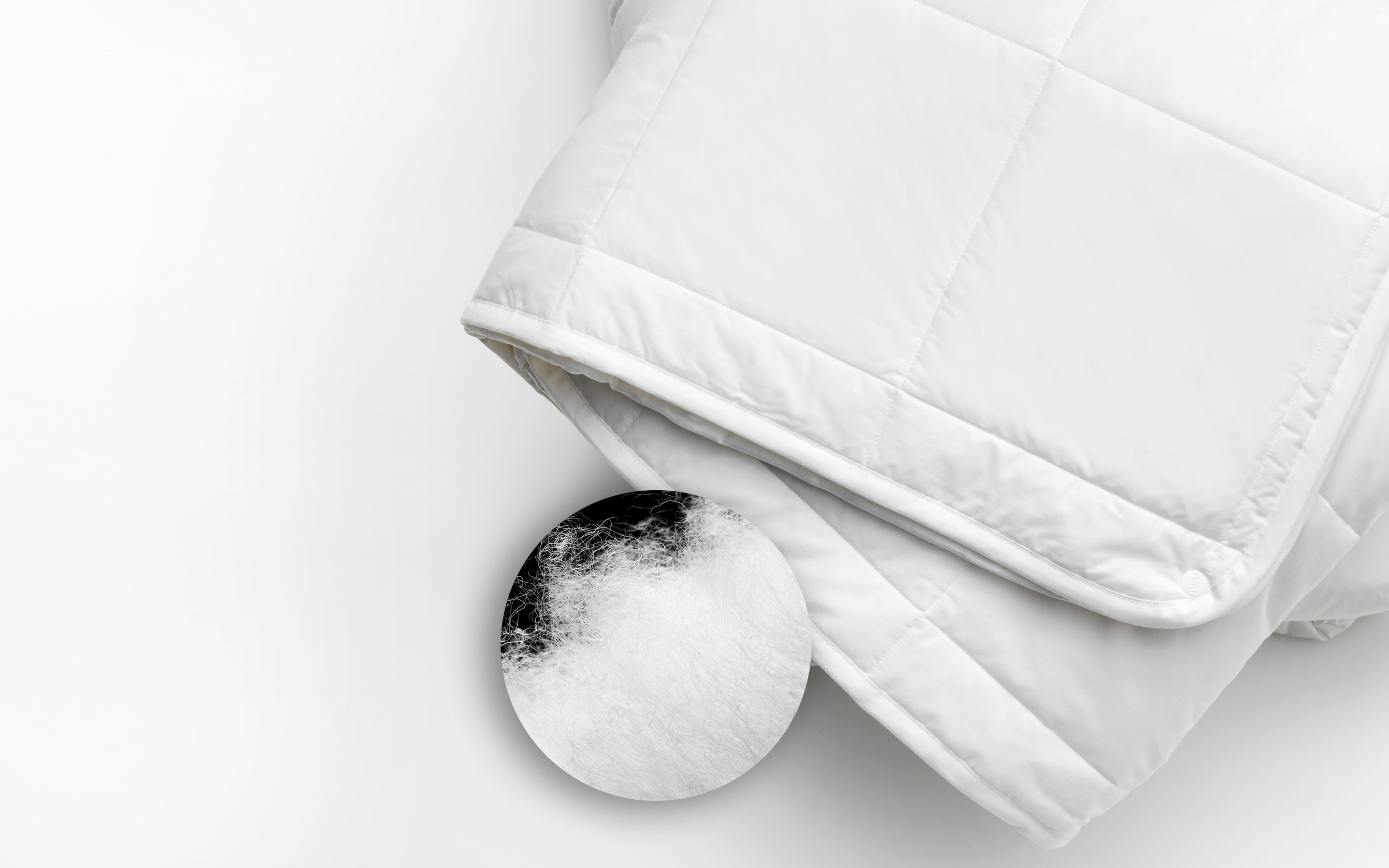 A duvet with Total Body padding, a special bioceramic fiber with silver ions, that can transfer heat evenly and encourage the circulation of blood.