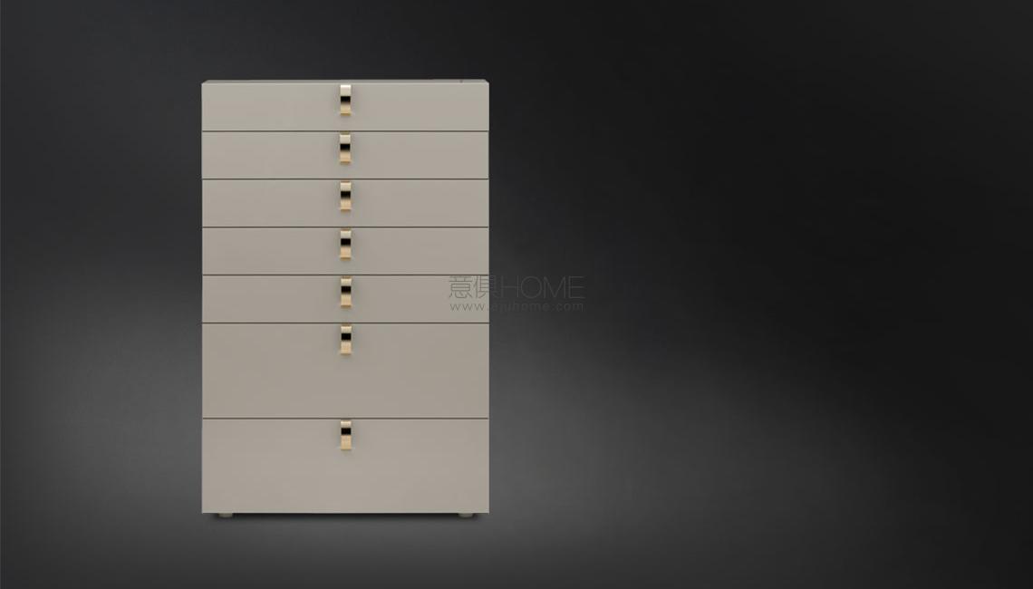 該系列由米色床頭柜和六斗柜組成。它的特點在于把手可選擇兩種顏色:金色和鎳黑色。