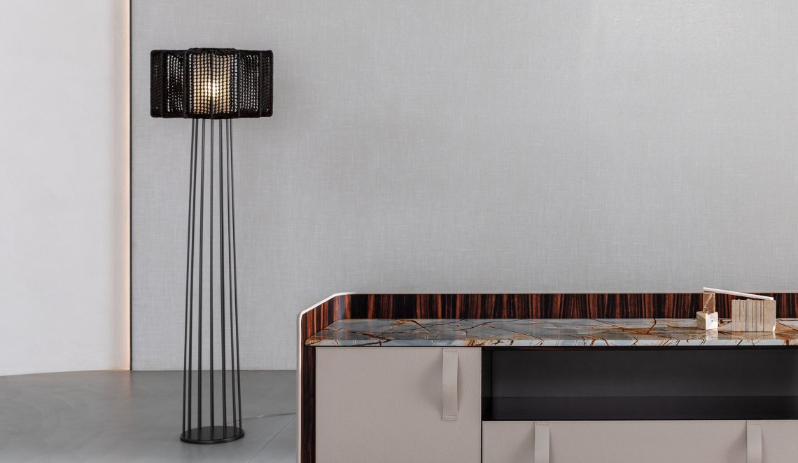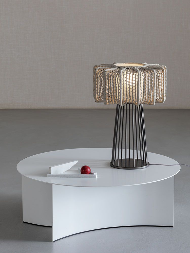 Arno燈具系列無論落地燈或臺燈,都是相當精致而富有現代氣息的產品,高貴氣質從細節和純熟的制造中流露出來。皮料是Arno燈具系列的主角,是這類產品中難得一見的元素。燈罩設計采用古老的皮革編織鞣制工藝,金屬支撐結構傳遞出流暢、簡約和支撐感,與燈罩形成鮮明對比。