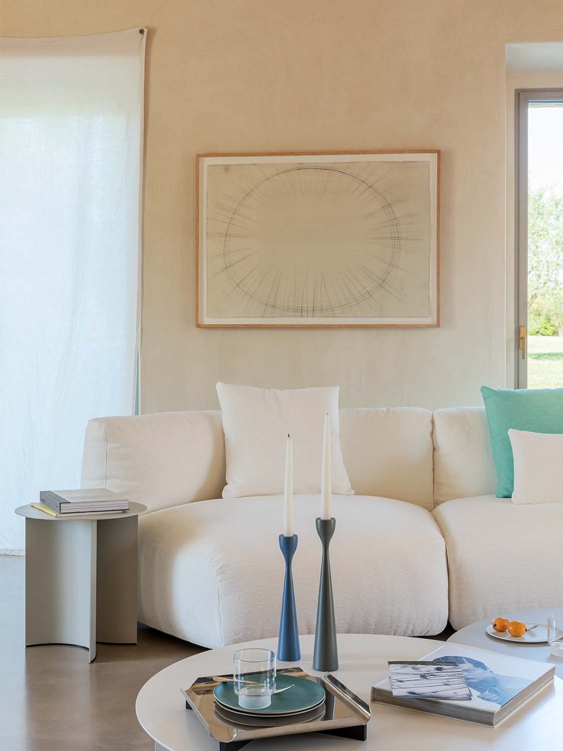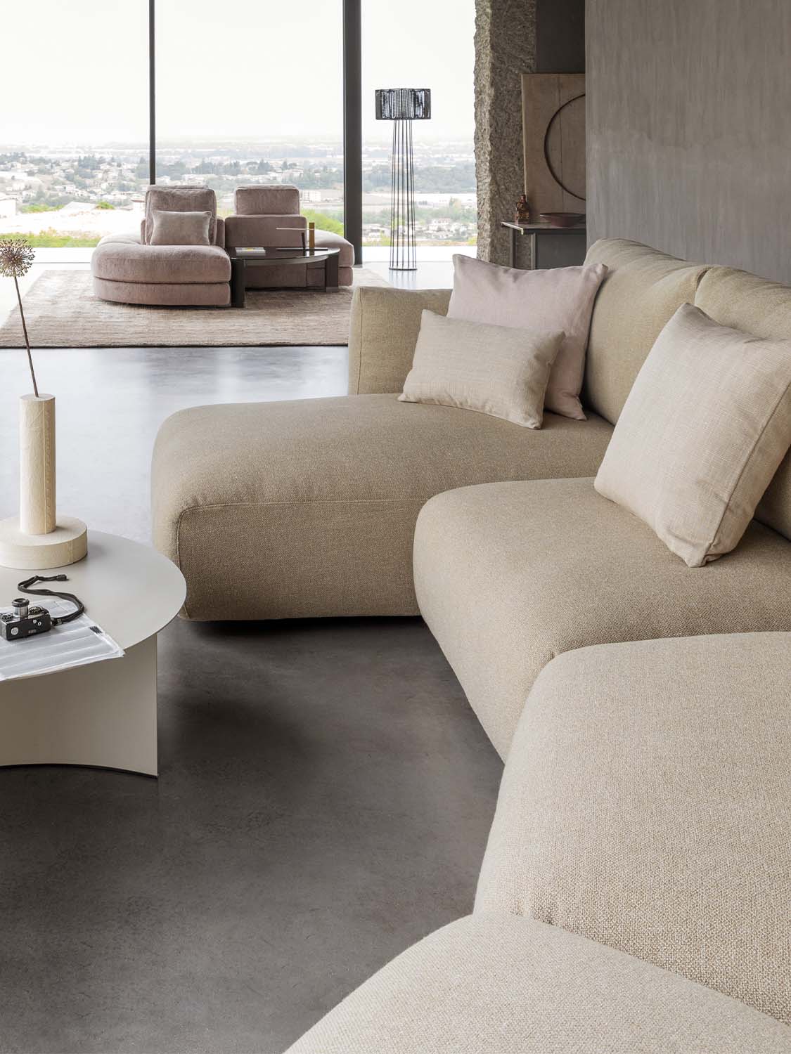 Fiocco最初在我的腦海里就是一款簡潔大方的沙發(fā),由少數(shù)幾個部分構成,組合方便。從這樣的理念誕生出的設計產(chǎn)品,可以360度地欣賞它的各個體面和線條。我感覺像欣賞一尊雕塑一樣全方位地觀賞它,從各個角度品味它。這款沙發(fā)有七個底座元素,其中包括兩個躺椅模塊,一個五邊形模塊,可以隨意安插組合,打造柔和彎曲的造型。寬大的靠墊既是靠背又是扶手,有兩種高度,固定在U字型金屬支架上,兼具實用和美觀。我們希望把空間盡可能地留給靠墊這一織物元素,傳遞舒適愜意的視覺信號。Fiocco沙發(fā)邀請您來享受并沉浸其中,就像置身于柔軟的雪堆之中。
