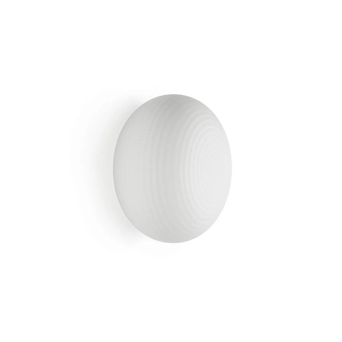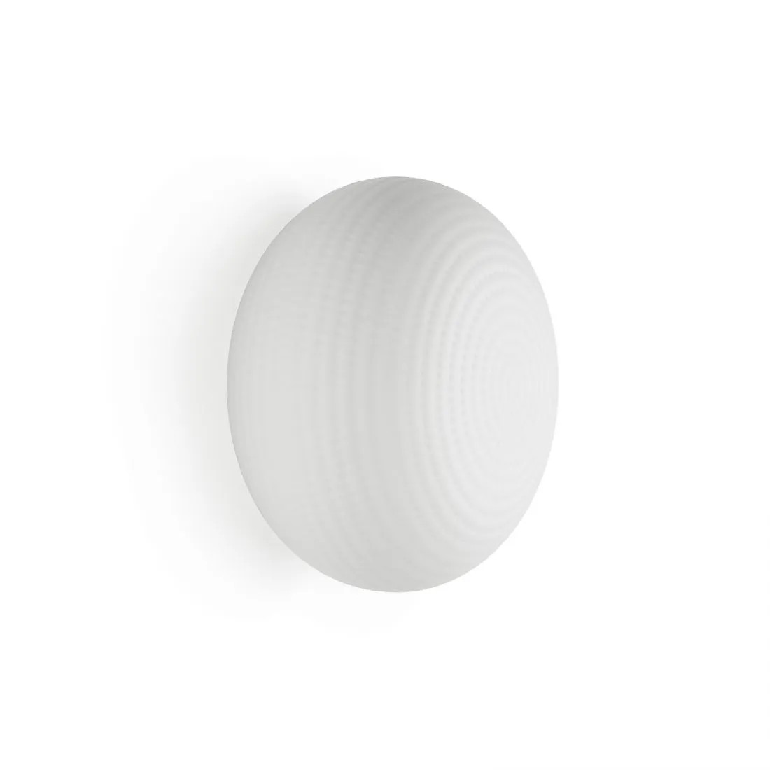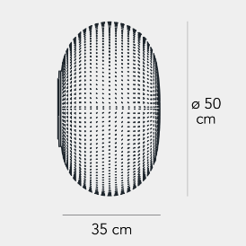 Soffiati a bocca, molati a nastro e poi passati nell’acido al fine di ottenere il caratteristico “effetto seta” dei vetri di pregio, i diffusori di Bianca sono disponibili in tre diametri che completano tutte le tredici tipolesgie di apparecchi che ne declinano la famiglia. Il più grande misura 50 cm di diametro e, per dimensioni e quantità di vetro, ha rappresentato, rappresenta e rappresenterà ad ogni produzione una autentica sfida anche per i più abili maestri vetrai, abituati a soffiare vetri a fermo che, secondo il tradizionale processo produttivo veneziano, non prevede l’aiuto di ausili esterni per far girare e modellare la massa di vetro nello stampo, ma solo l’impiego della propria maestria e capacità polmonare.