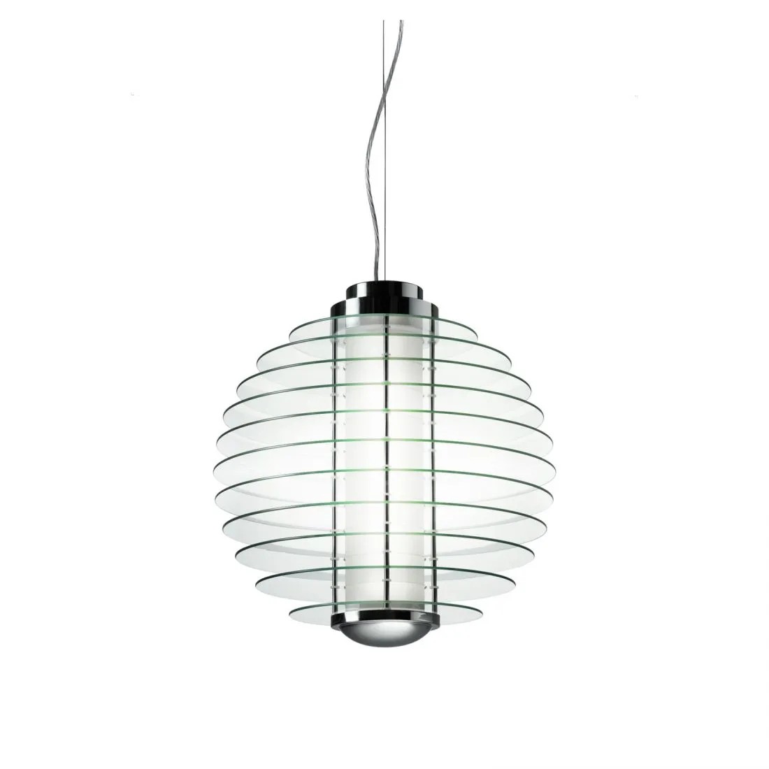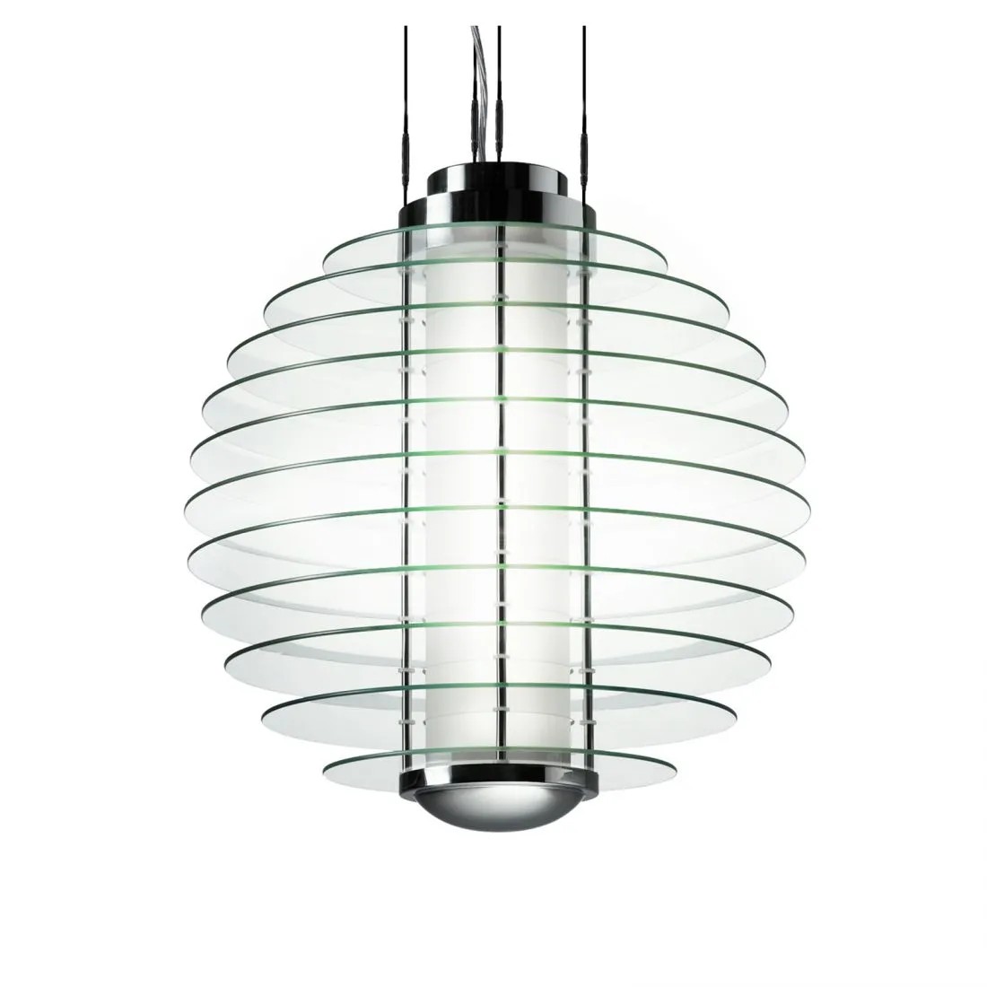 Sequenza di dischi orizzontali in vetro temperato trasparente per un'autentica installazione luminosa. Disponibile da terra e da sospensione, anche in formato XXL, che triplica il diametro della versione classica, fino a raggiungere i 150 cm. Un protagonismo deciso per arredare anche spazi di grandi dimensioni con un’eleganza intramontabile.