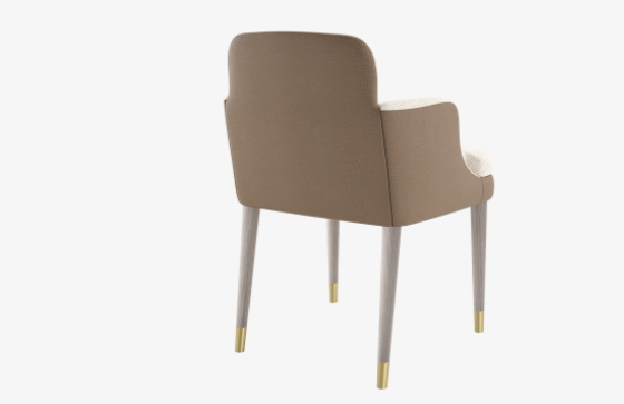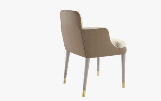The captivating MODENA chair is a charming blend of comfort and poise. Employing a palette of easy-going neutrals, the design features a cocooning seat upholstered internally in fabric and externally in leather, and slender wooden legs capped in complementary brass.