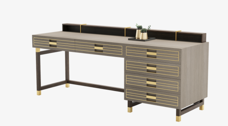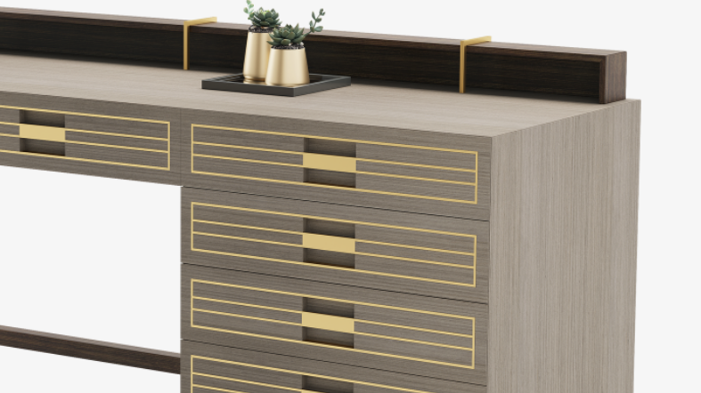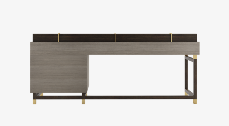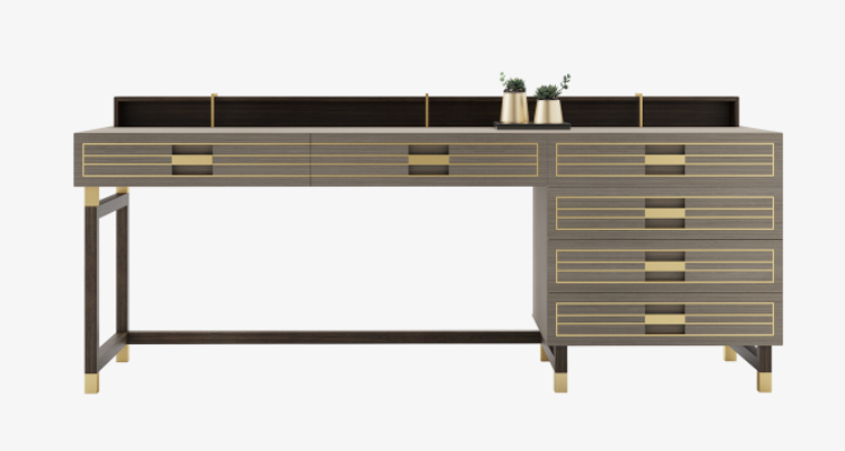 Defined by an angular silhouette, the handsome EDINBURGH II desk will appeal to those who prioritise a streamlined workspace that aids concentration, while appreciating the metallic embellishments that add a note of sophistication to its signature blend of veneer, lacquer and solid wood.