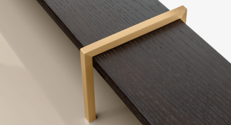 Touching on Art Deco design, the EDINBURGH desk features brushed brass inlays set into the glossy wood. The roomy top and multiple shelves leave plenty of space for productivity.