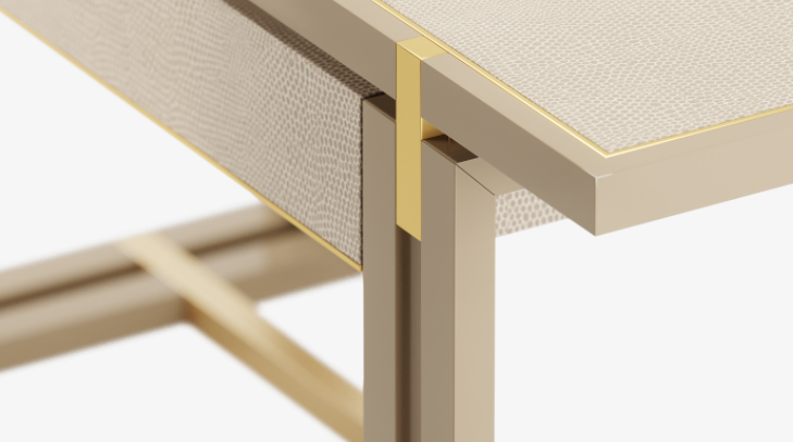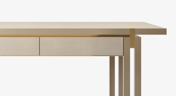 A comprehensive bureau, the SEOUL desk's two handle-free drawers complement its clean-lined loo, opening smoothly with a pleasing mechanical click, while luxurious leather enhances the fronts and surface, enticing you to work.