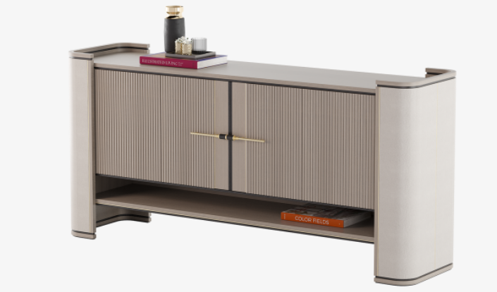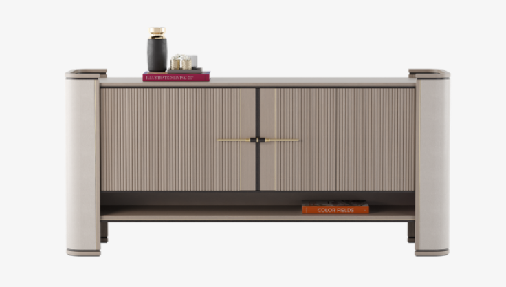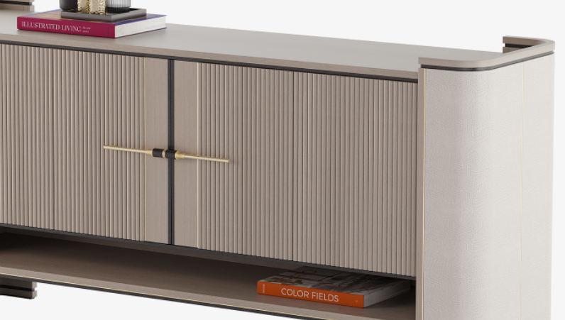 Fluted double doors, leather-covered sides, seams of brushed brass, an open shelf and a sculptural handle - there are a lot of small details to take in when it comes to the BUENOS AIRES sideboard, and yet the overall impression is perfectly streamlined and practical.