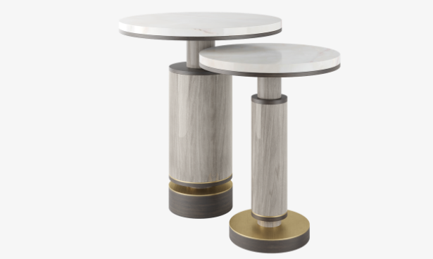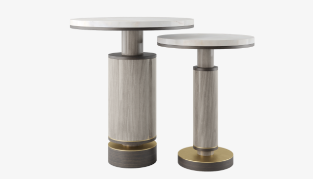 A stylish double act, the BERLIN Side Table’s two volumes feature stone surfaces, wood veneer pedestals and brushed-brass details. Playing with different proportions, they’re presented in a way that is pleasingly similar yet intriguingly different.