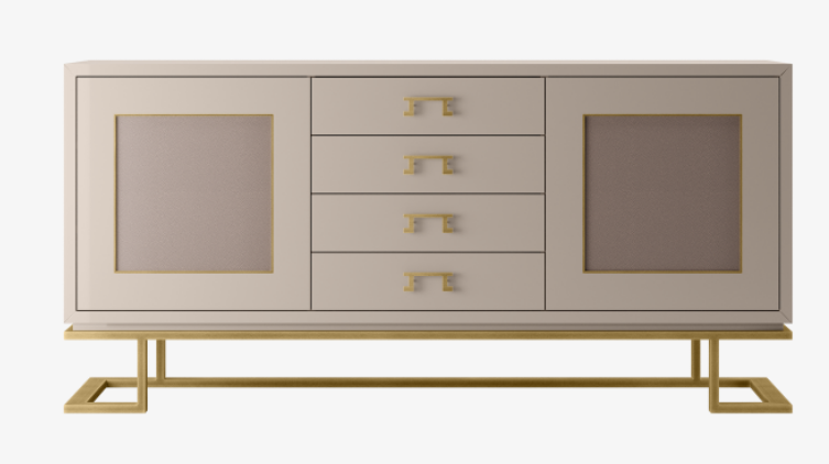 An evolution of our NAJA sideboard, the NAJA II integrates four drawers and two doors into its streamlined silhouette. Touches include original handles, leather inlays and a sculptural base seamlessly crafted from brushed brass.