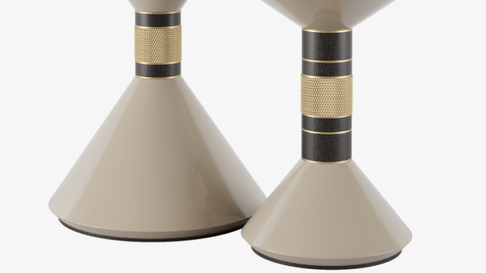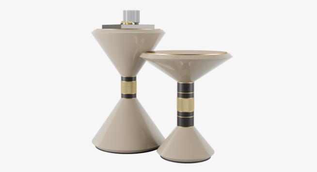 With their conical forms and geometric aesthetic, the design of the HAVANA side tables is a restrained nod to the Memphis movement. Their playful appeal is underpinned by strong materiality, blending marble, lacquered wood veneer and brushed brass accents.
