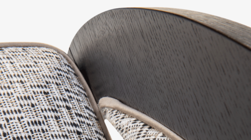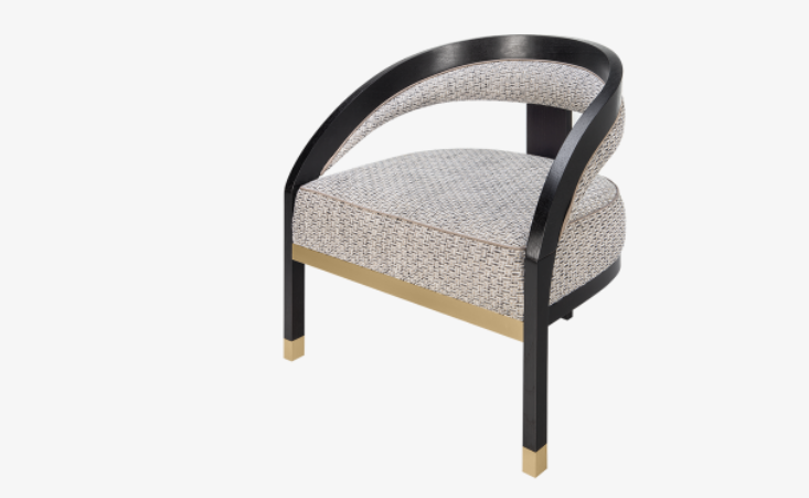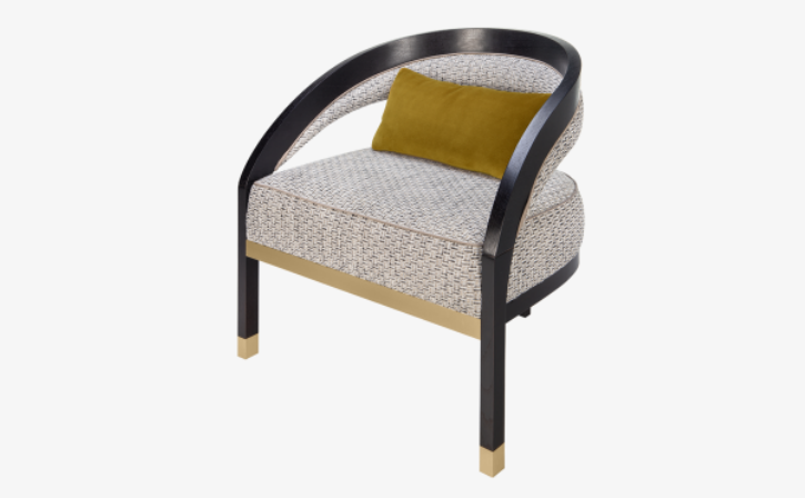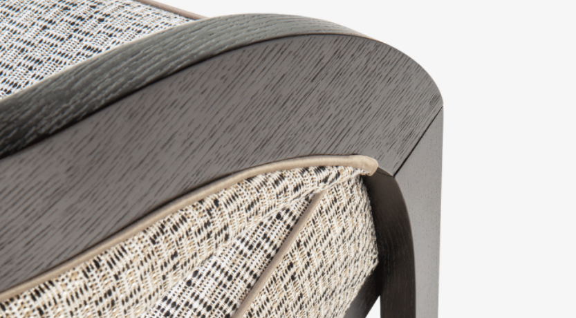A statement seat, the unexpected AMER is one of our most sculptural armchairs. Featuring a tripod base and sweeping wooden frame, it ups the drama further by incorporating accents of brushed brass in unexpected and dynamic ways.