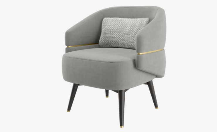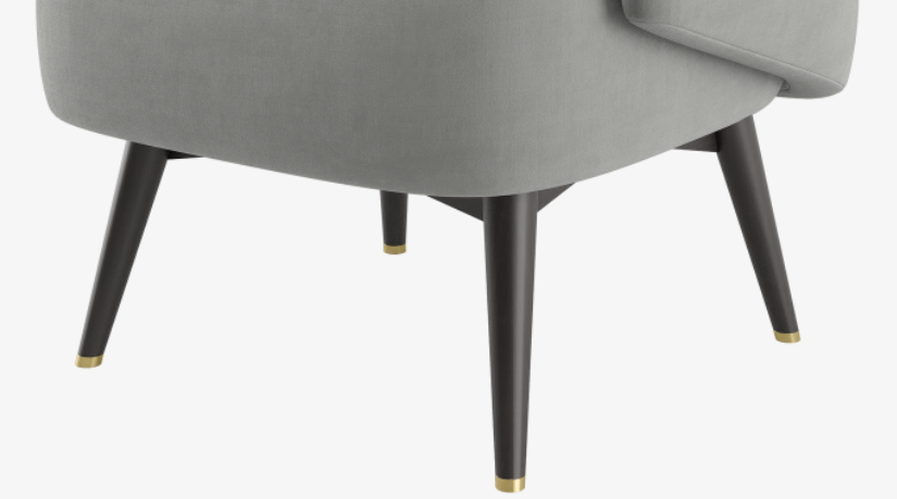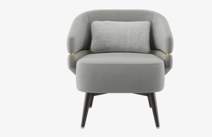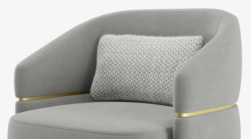 The velvet-upholstered CAIRO Armchair packs a lot of personality into its neat design, which features brushed-brass feet and a striking ‘belt’ that loops around the backrest and arms.