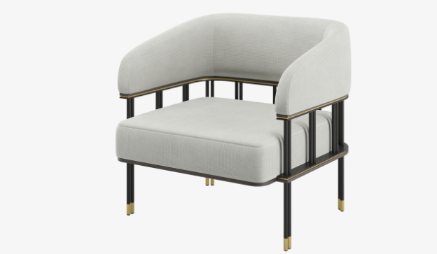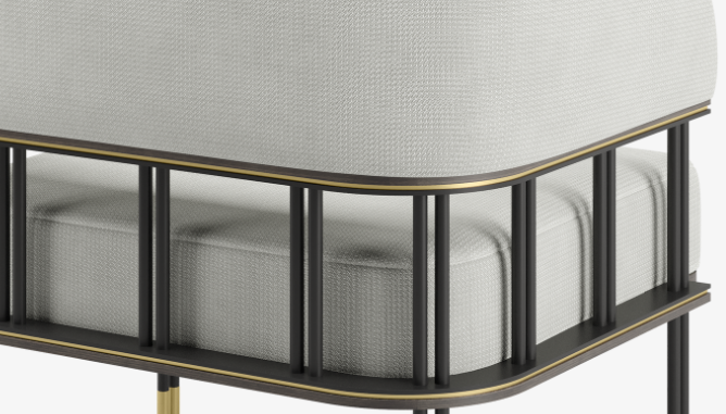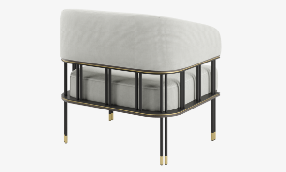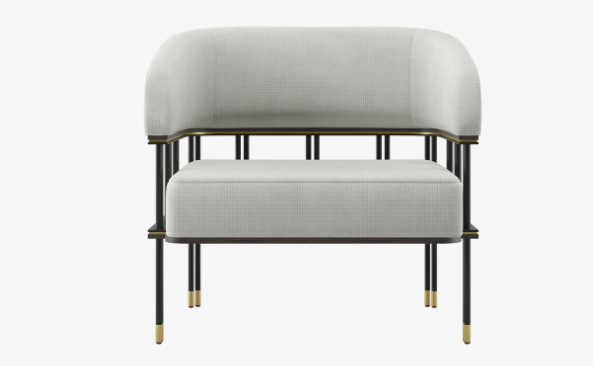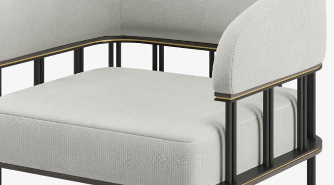Straddling the divide between seat and sculpture, the ROTTERDAM armchair grabs the attention with its unique frame, which is crafted from a blend of painted iron, wood veneer and brushed brass, while a square seat and curved backrest upholstered in beautiful linen ensure absolute comfort.