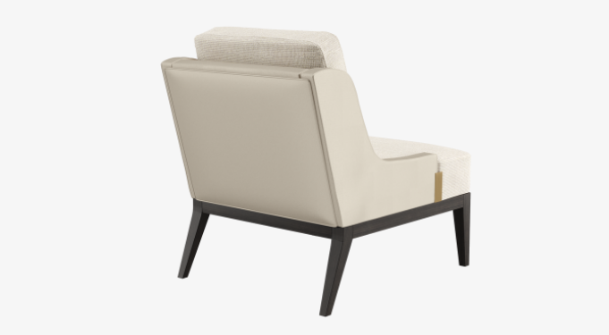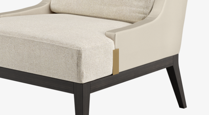Notice how the BRERA chair’s fabric-upholstered seat cushions and satin-covered back are connected by a rectangle of brushed brass? It’s subtle details such as this that set FRATO’s designs apart.