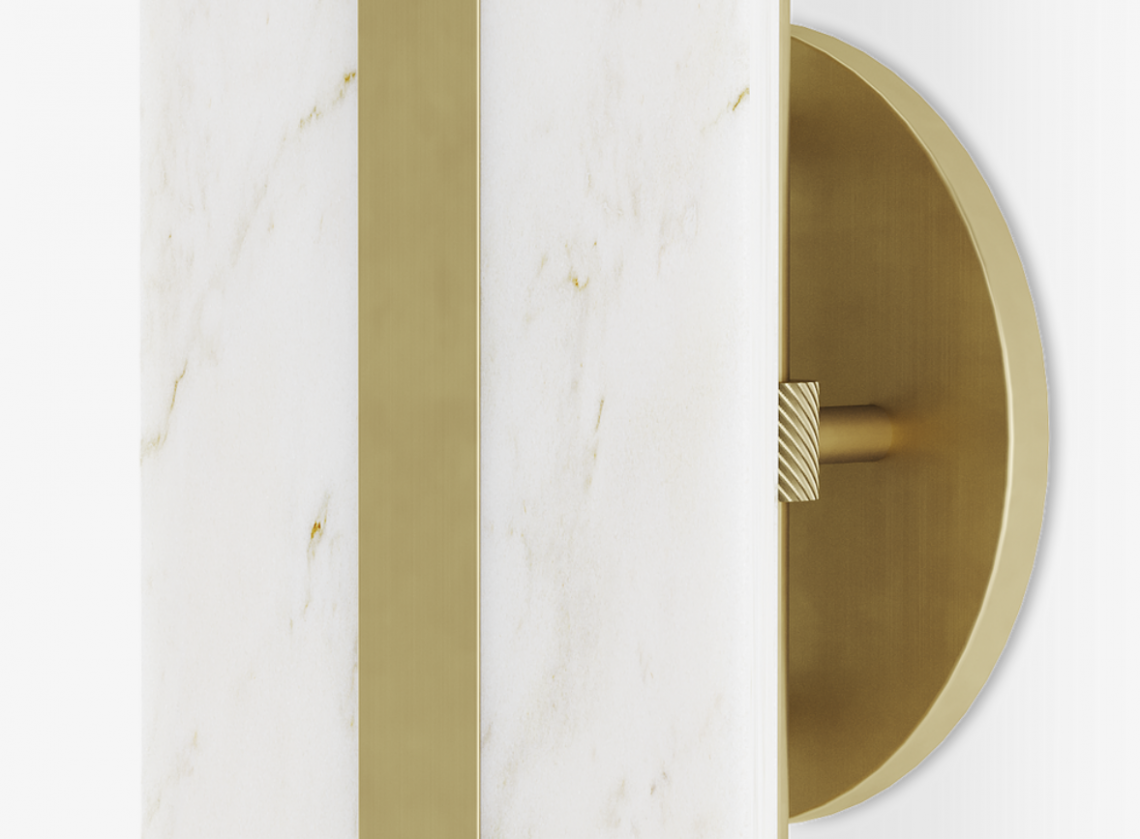 A gleaming strip of brushed brass bisects the pale stone of our HEIDELBERG wall lamp, which casts a beautiful ambient light that’s ideal for creating an atmospheric interior.
