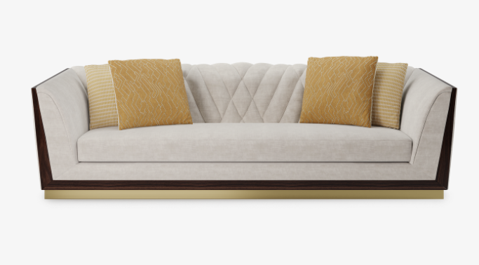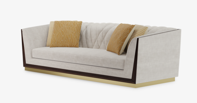 Add a hint of Art Deco glamour to your living space with the stunning CAMBRIDGE sofa. Its clean-lined, tuxedo shape showcases the design’s glossy wood veneer frame, shimmering metallic base, and fabulous crosshatch stitching beauitfully.