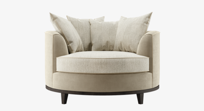 The loveseat-style KANSAS offers a different perspective on sofa design. A true circle filled with plump cushions, it invites you to curl up in absolute comfort. Signature design details include contrast upholstery and a solid wood base.