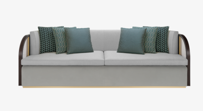 "As inviting as the Eternal City, the ROME sofa beckons you with curved arms, complete with characteristic rattan panels. It's finished with velvet and linen, making it ultra-cosy to sink into. "