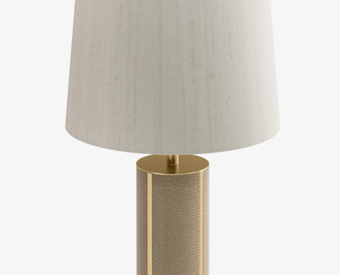 The desirable CLOS table lamp possesses an air of self-assurance thanks to its plentiful proportions and timeless good looks. A blend of brushed brass and textured leather