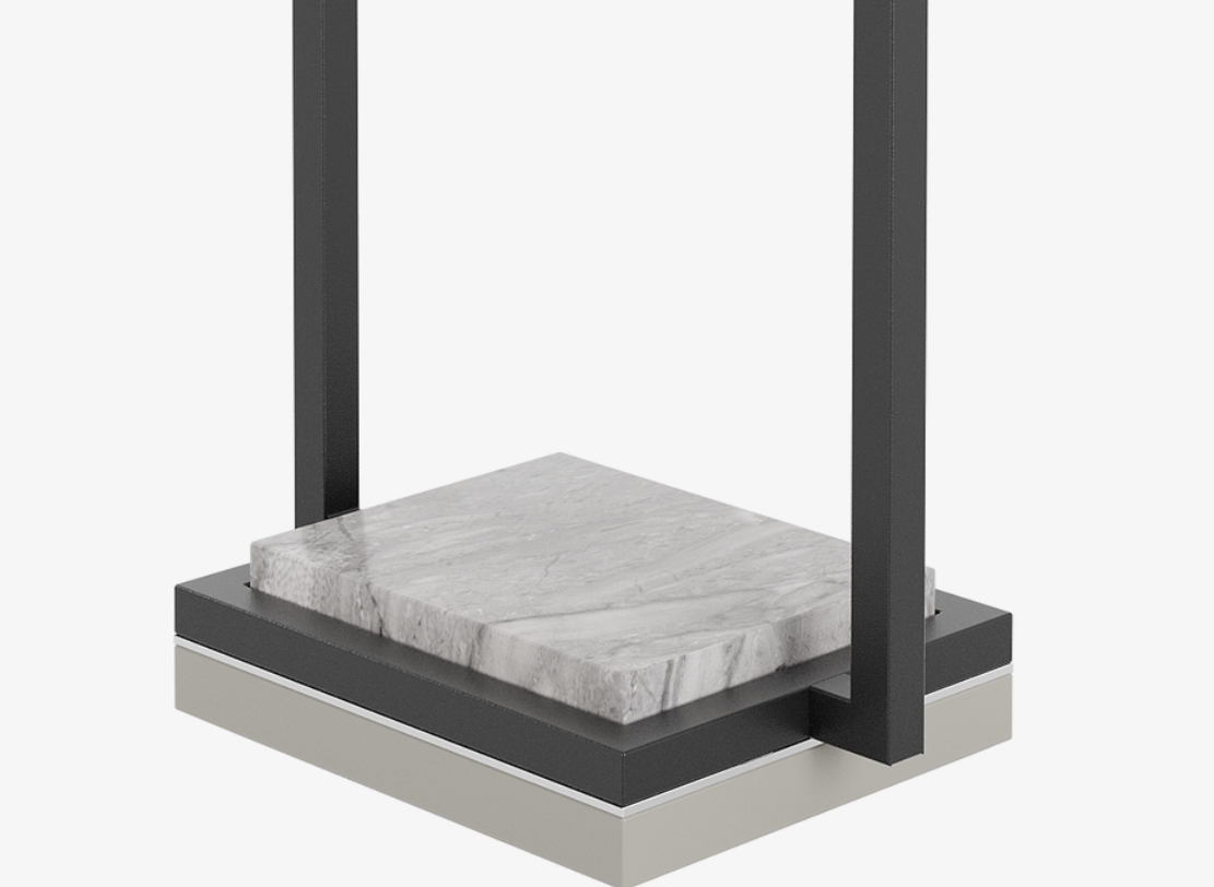 A structural fusion of stainless steel, stone and lacquered wood topped with a fabric shade, the CORFU Table Lamp brings luxe materiality to a refined silhouette.