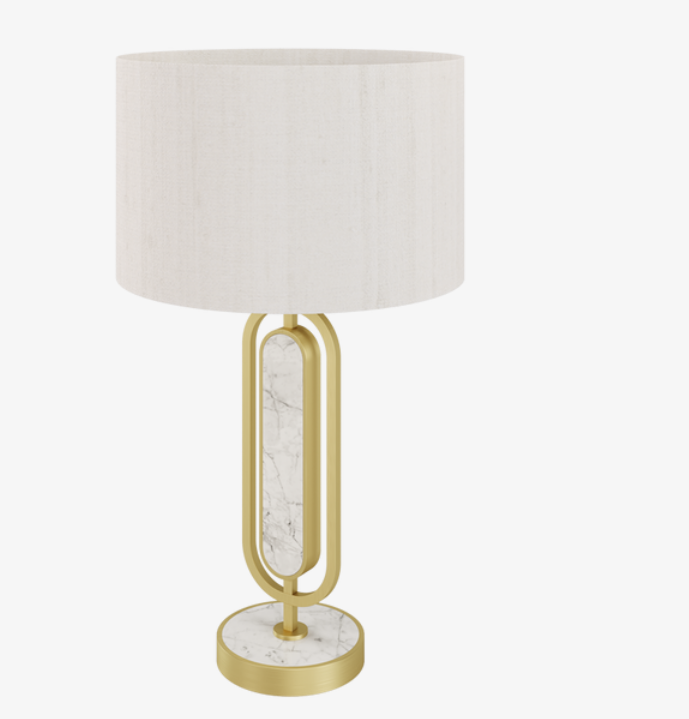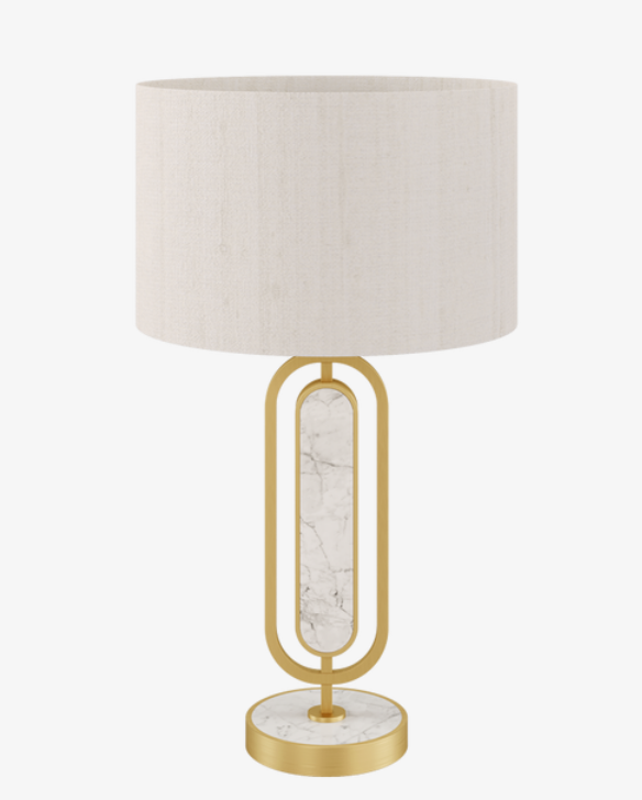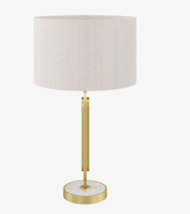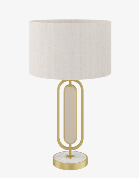 Inspired by the past but made for the present, the MAUI table lamp has timeless appeal. An elegant blend of brushed brass, stone and black glass, its ornamental base is crowned with a classic silk drum shade and will elevate any surface.