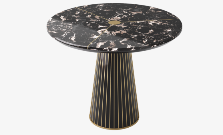 Dark and dramatic, the PINOT II's modernist silhouette is elevated through the application of mesmerising materials that include deeply patinated stone, glossy lacquered wood and graphically deployed brushed brass.