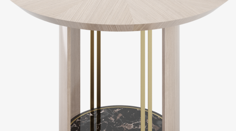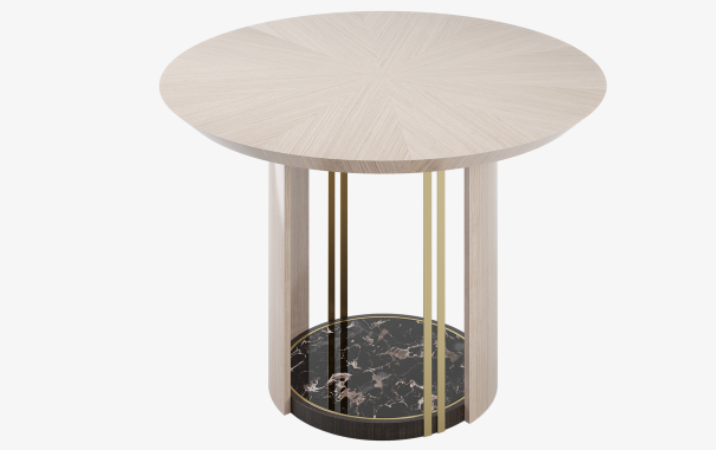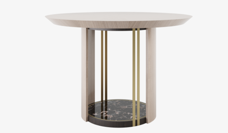 A story of two halves, the fabulous SENDAI's simplistic tabletop reserves the design drama for its showstopping base, which is skilfully fashioned out of patinated stone, smooth wood veneer and lustrous brushed brass.