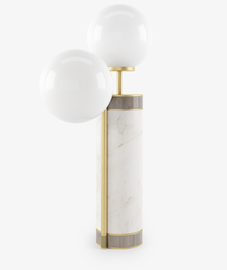 Inspired by the laid-back ease of the Oregon city, the PORTLAND table lamp is a masterclass in modern simplicity. Two orb shades meet a wood and stone base for an interesting yet pared-back finish
