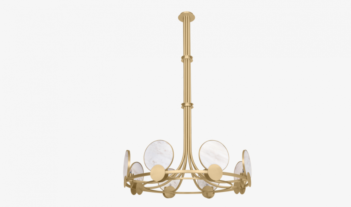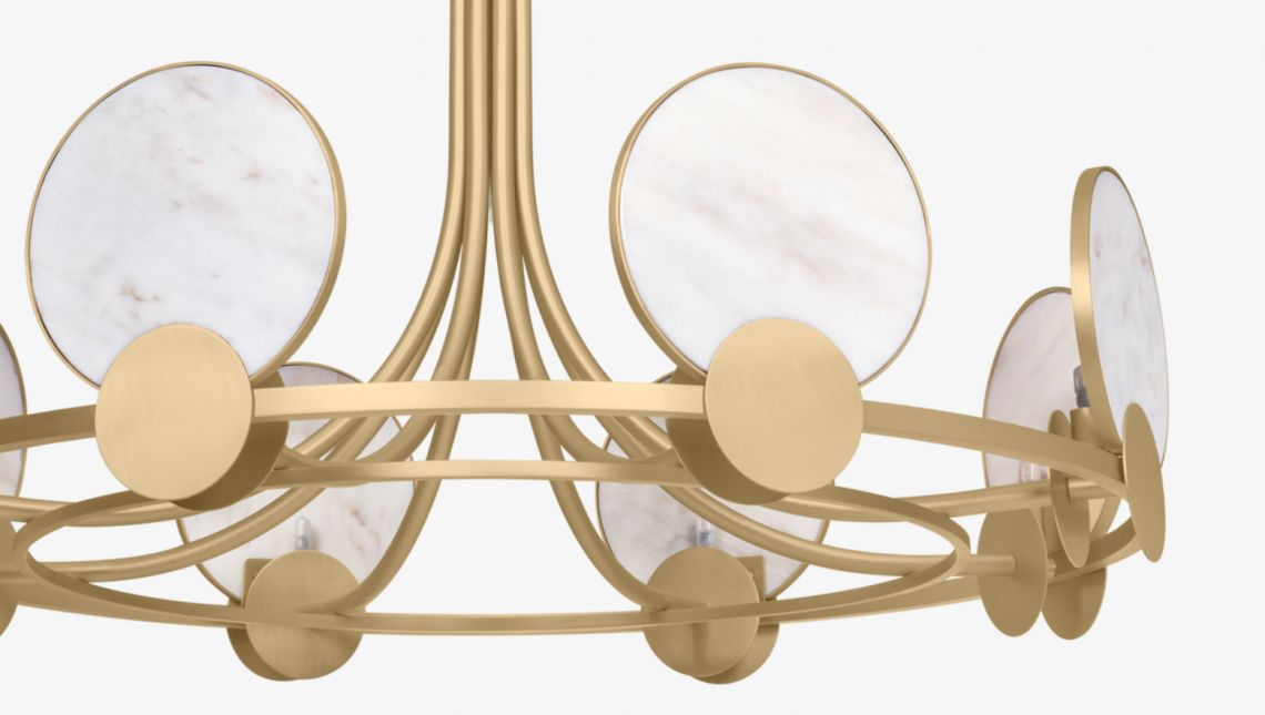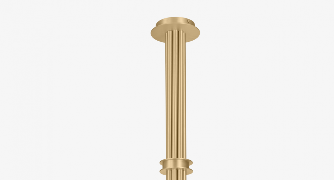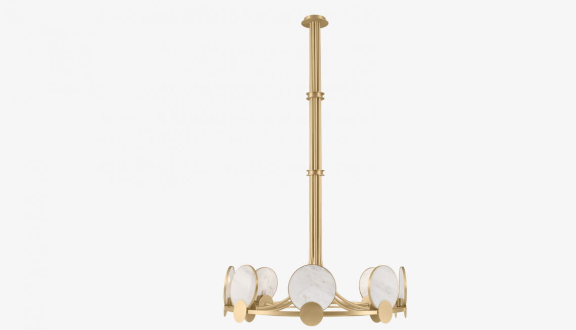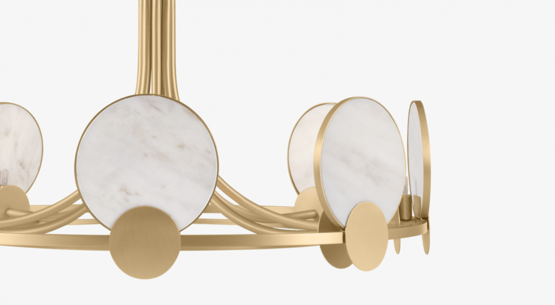 A statement pendant that will add drama to any space in the home, the PETRA ceiling lamp by FRATO combines the enduring warmth of brushed brass with a striking circular design of overlapping discs in brass and pale stone.