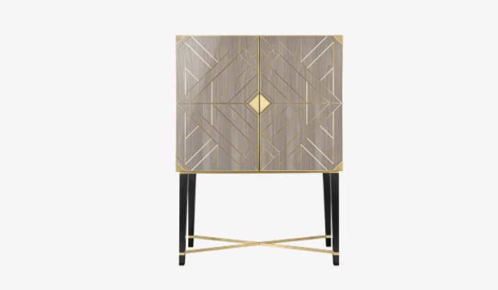 The sublime SIRMIONE tall cabinet makes its mark thanks to an intricate diamond-inspired design that enhances its doors and carries through to its characteristic handles.